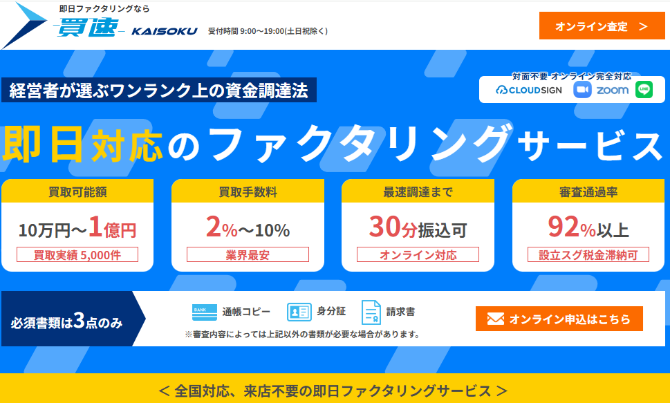 買速(カイソク)ファクタリング口コミ評判|審査・必要書類・営業時間・手数料