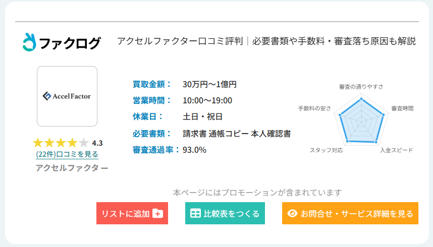 アクセルファクターのファクタリングに関する記事や口コミはこちらをご確認ください。