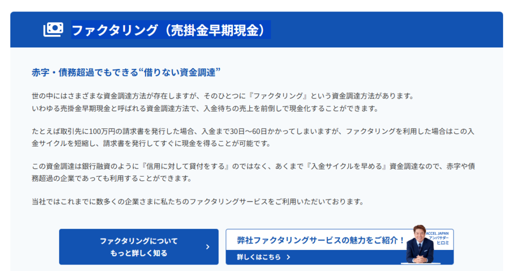 アクセルファクターのファクタリング公式ページはこちら(https://accelfacter.co.jp/)