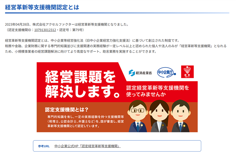 株式会社アクセルファクターは経営革新等支援機関に認定されてます