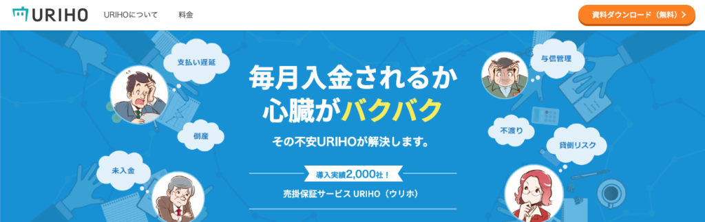 URIHO(ウリホ)は1ヶ月無料で利用でき、初期費用0円でスタートできる売掛保証サービスです。導入するメリットは倒産や1ヶ月以上の支払い遅延の場合は、代わりにウリホが支払いをしてくれる点です。