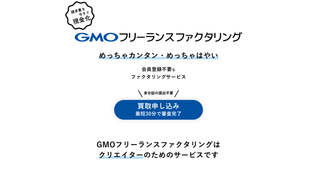 | GMOフリーランスファクタリング | https://freelance.factoring.inc/ |