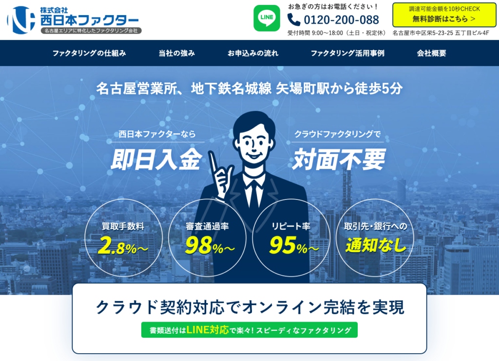 西日本ファクター名古屋 1,000万まで即日現金化/完全オンラインファクタリング