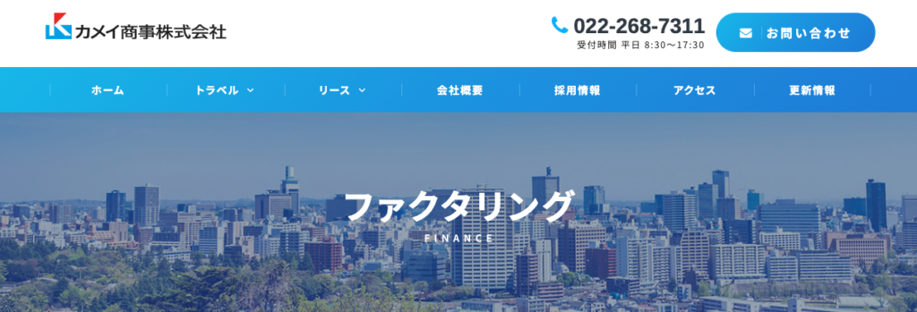 カメイ商事は仙台市にあるリース・ファクタリング会社です。最短即日入金が可能で、契約形態も2社間ファクタリング・3社間ファクタリング・注文書ファクタリングに対応しています。
