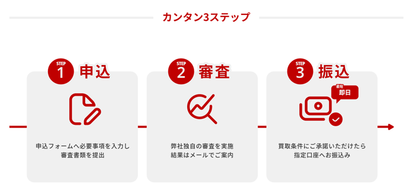 | 必要書類 | ・請求書 ・通帳写し(またはWEB明細) ・本人確認書類 ・決算書(個人事業主の場合は確定申告書) ※ご準備できない書類がある場合はご相談承ります |