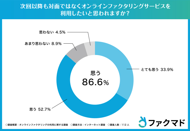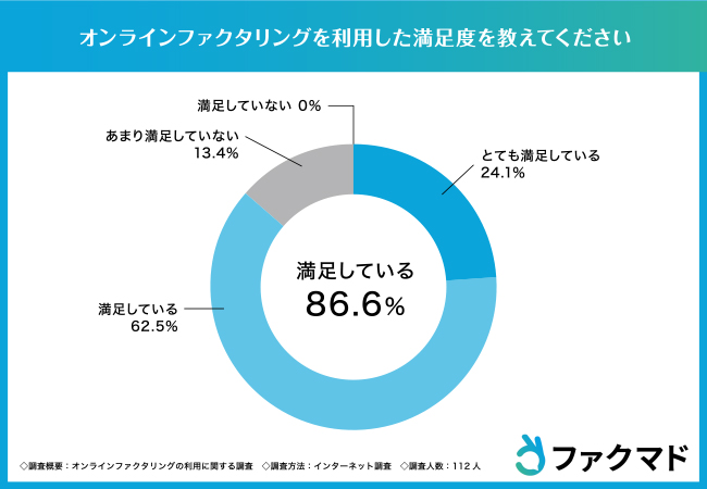 と、86.6%の利用者がオンラインファクタリングに満足していることがわかりました。