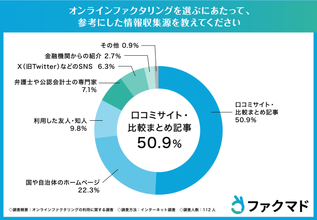利用者はファクタリング会社を選びの際にどこで探しているのでしょうか。「オンラインファクタリングを選ぶにあたって、参考にした情報収集源を教えてください」と質問してみました。