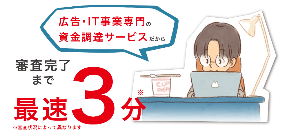 広告業界・IT業界を知り尽くしたスタッフ達が、それぞれの業界ならでは慣習やキャッシュ不足に陥るポイントを熟知しているので貴社の資金繰りに関する問題をスピード解決いたします。2つの業界に特化した資金調達サービスだから最速で高価買取が可能です。(2社間・3社間に対応◎、見積書・受注書・発注書にも対応◎)