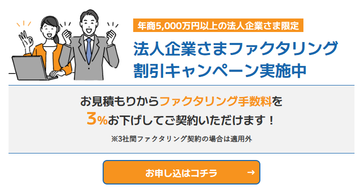 お見積もりからファクタリング手数料を3%お下げしてご契約いただけます!
