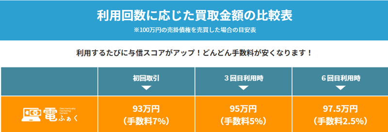 トップマネジメントの電ふぁくでは、利用するたびに与信スコアがアップし、リピート利用時に手数料が安くなります。